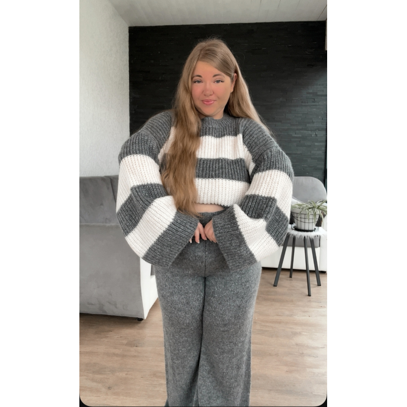 Pull à rayures en maille, manches bouffantes