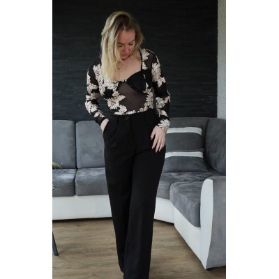 Un body chic et féminin, sublimé par des broderies florales et une coupe près du corps. Son tissu légèrement transparent apporte une touche sophistiquée, parfait pour un look de soirée ou une tenue habillée tendance. Fermeture pratique au bas à l’entrejambe et manches longues pour un style raffiné.