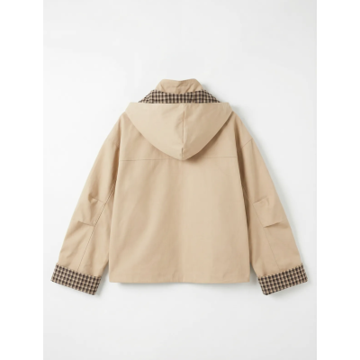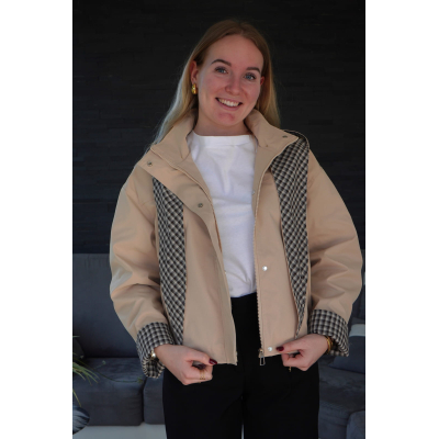 Son design structuré est sublimé par un large empiècement à motif carreaux sur le devant et des finitions assorties aux poignets, pour un look à la fois moderne et intemporel.
