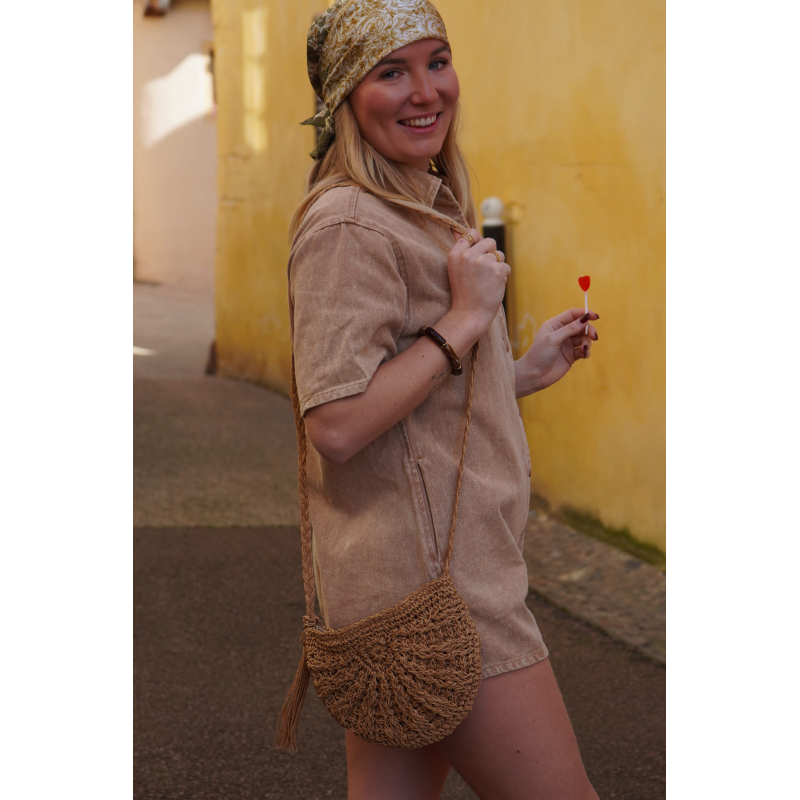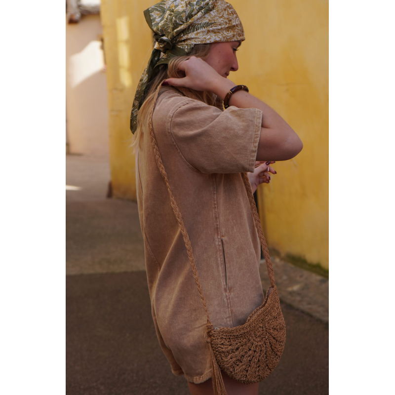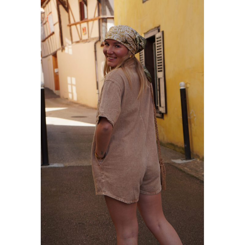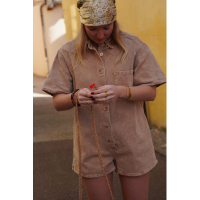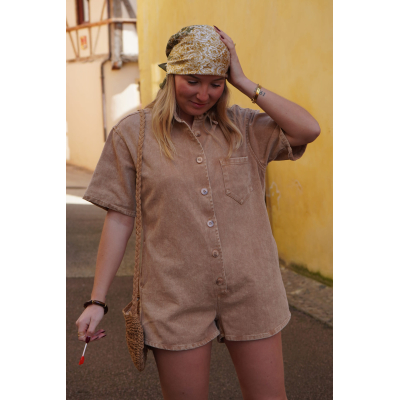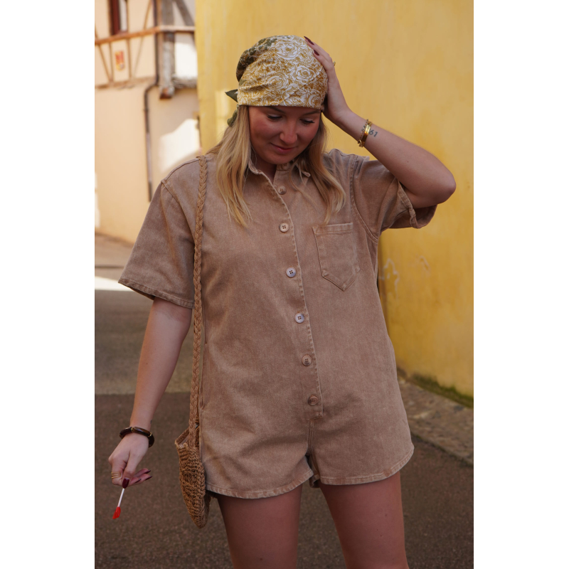 Combishort en jean marron SOLEDAD