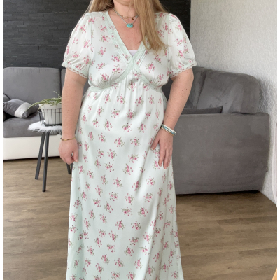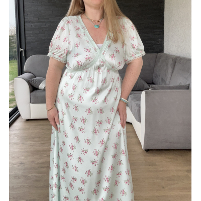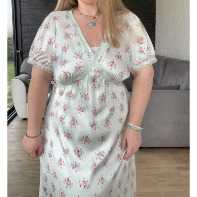 La mannequin fait une taille 44/46 et mesure 1M50. Elle porte la taille 44.