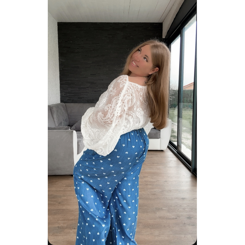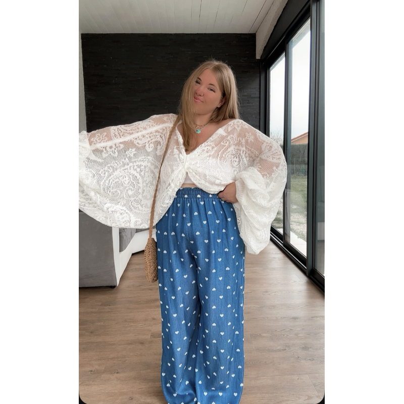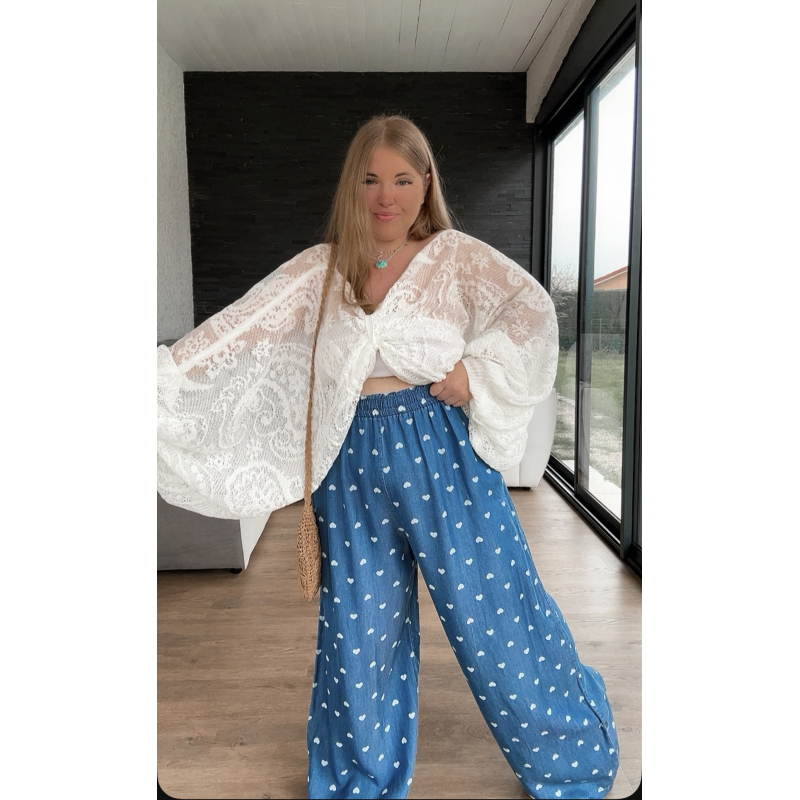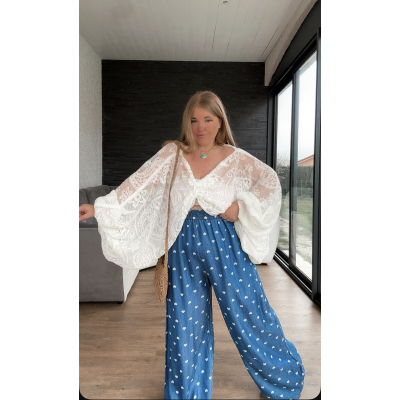 La mannequin fait une taille 44/46 et mesure 1M50. Elle porte la taille TU 44 au 46/48.