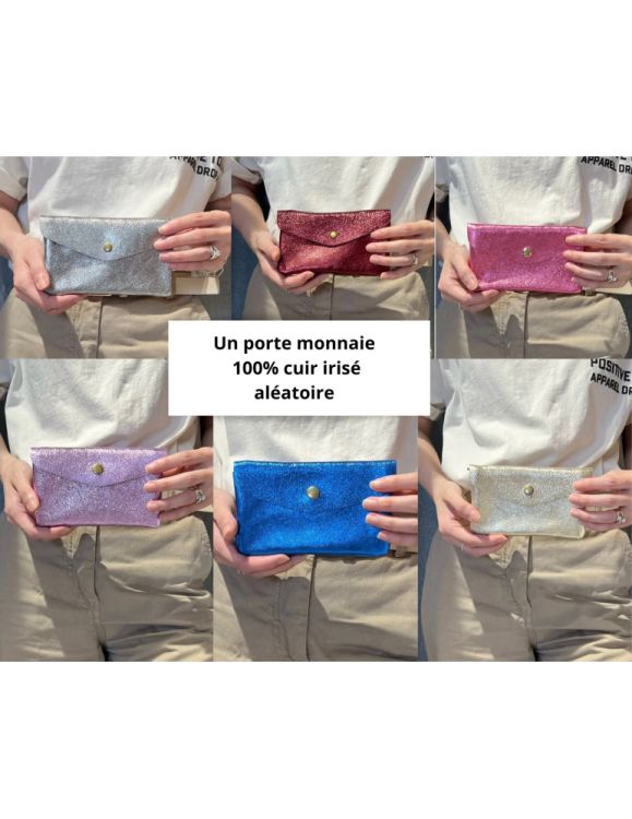 - Un porte monnaie 100% cuir irisé parmi différents coloris aléatoire